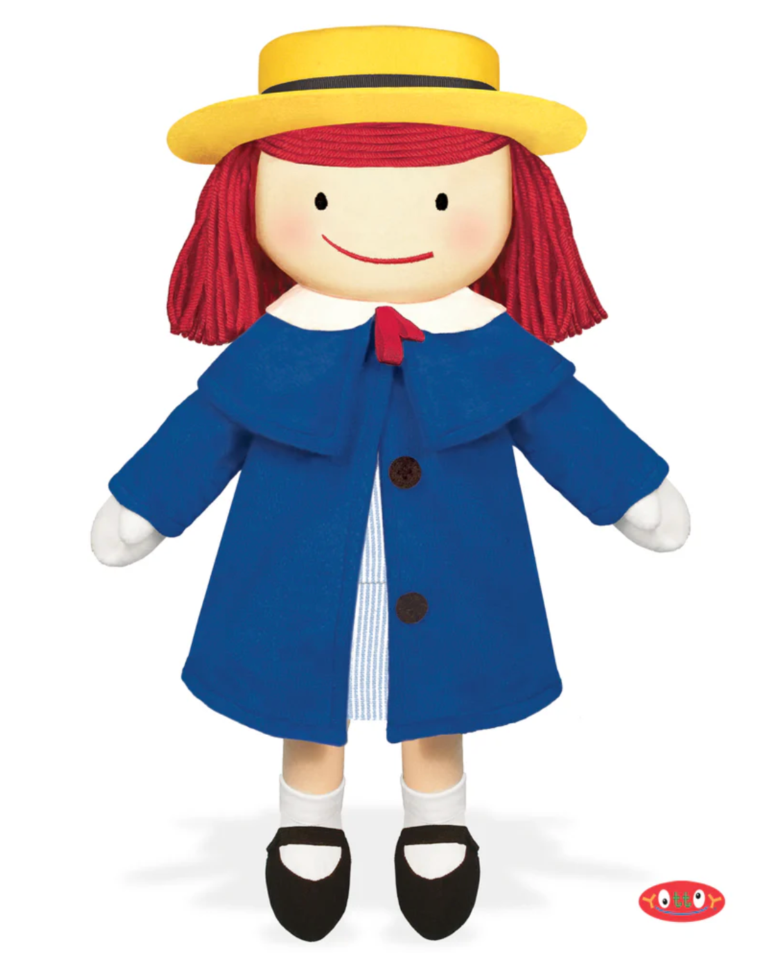 Madeline steps out of her books and into your arms as your very own soft doll. YOTTOY's Classic Madeline Soft Doll comes to life dressed in her classic removable blue coat, school dress and yellow hat with grosgrain ribbon trim. With her familiar embroidered features, blush cheeks, famous red yarn hair, socks and shoes- even an embroidered appendix scar — our Madeline Soft Doll is sure to become a beloved friend."In an old house in Paris that was covered in vines, lived twelve little girls in two straight lines..." So begins Ludwig Bemelman's classic book Madeline. This is a true classic to share!