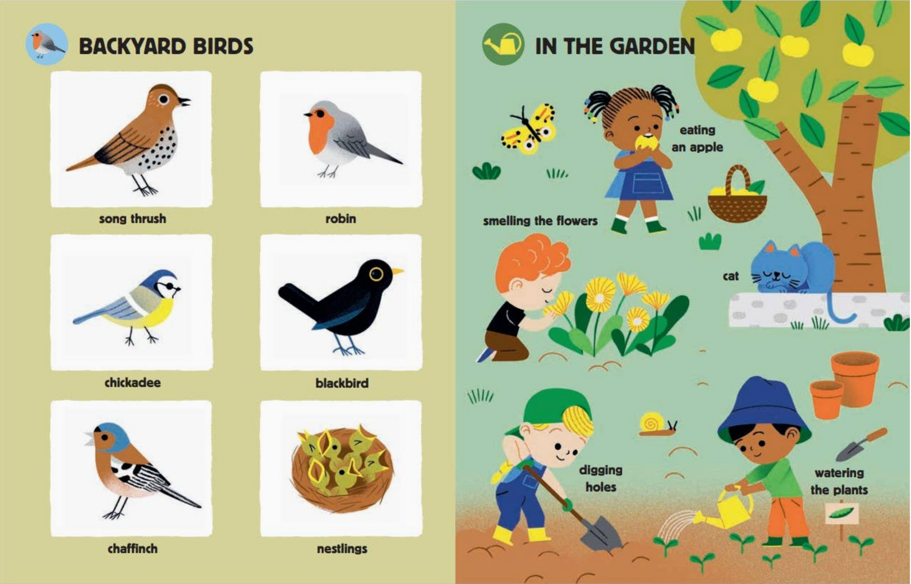 Buzz! Crunch! Woof! Moo! What’s that sound? Press the buttons to find out! An interactive sound book: Young readers develop important listening skills as they explore sounds and words in their language development. Whether it’s a barking dog or crunching leaves, children learn that the sounds of nature are all around us wherever we go: in the garden, at the beach, and even underwater! • 20-button sound panel with 100 sounds and words • Detailed illustrations keep readers engaged • Durable board book design is ideal for travel and just the right size for little hands • Ages 0 to 3