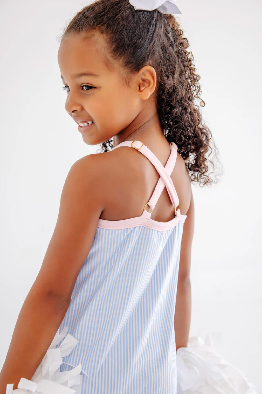 Game, set, match—the Prepletic™ Little Miss Tennis Dress in Beale Street Blue Seersucker with Palm Beach Pink is a winner on and off the court. Our seersucker fabric keeps her looking crisp through tennis lessons, active play, and summer celebrations without the fuss. With built-in shorts for confident movement and classic preppy style, it's the athletic dress that performs as well as it looks.