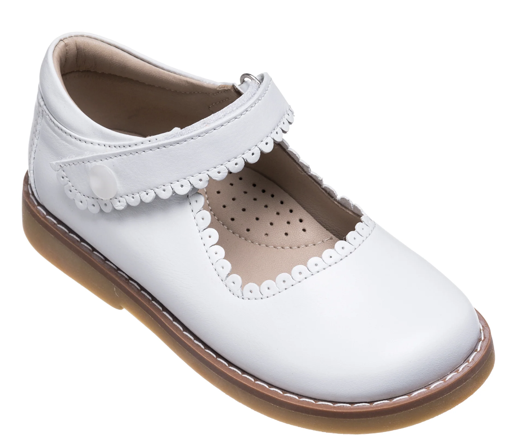 - Classic Mary Janes with scalloped edges