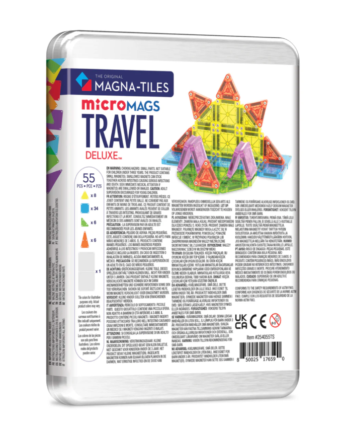 Designed with signature safety features like fastening rivets and lattice design, the Travel Set keeps playtime secure while enhancing fine motor skills, problem-solving, and hands-on STEAM learning. Bigger, better, and ready for adventure, the microMAGS Travel Set Deluxe 55-Piece Set is your ultimate companion for imaginative fun on the go!