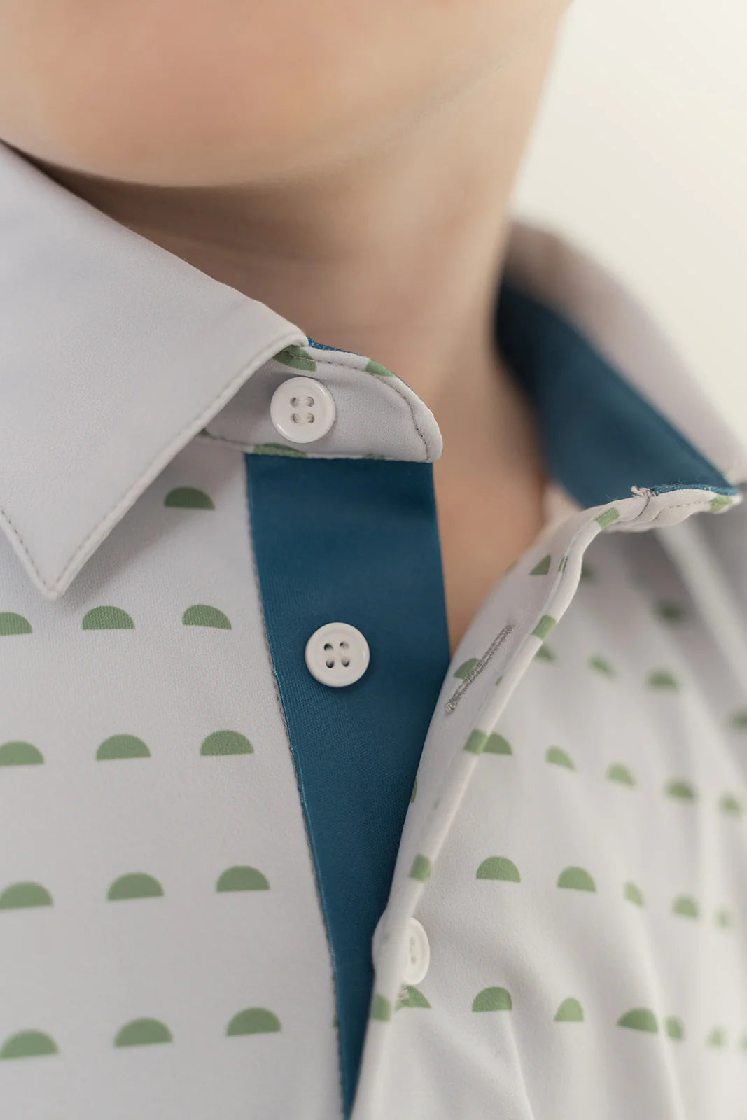 - Premium performance fabric, 3-button polo