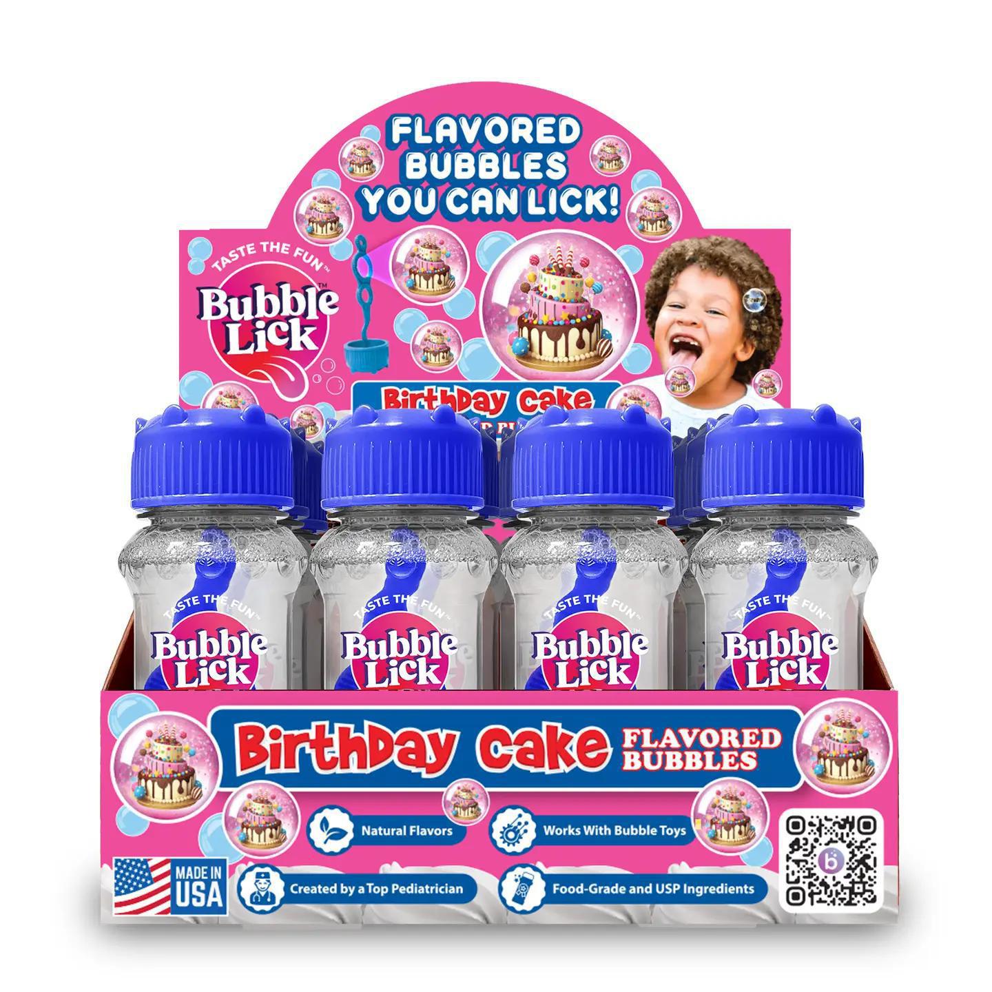 Celebrate every day with Bubblelick Birthday Cake Flavored Bubbles You Can Lick. These edible bubbles let kids have double the fun by chasing and popping bubbles while tasting the sweet, festive birthday cake flavor.