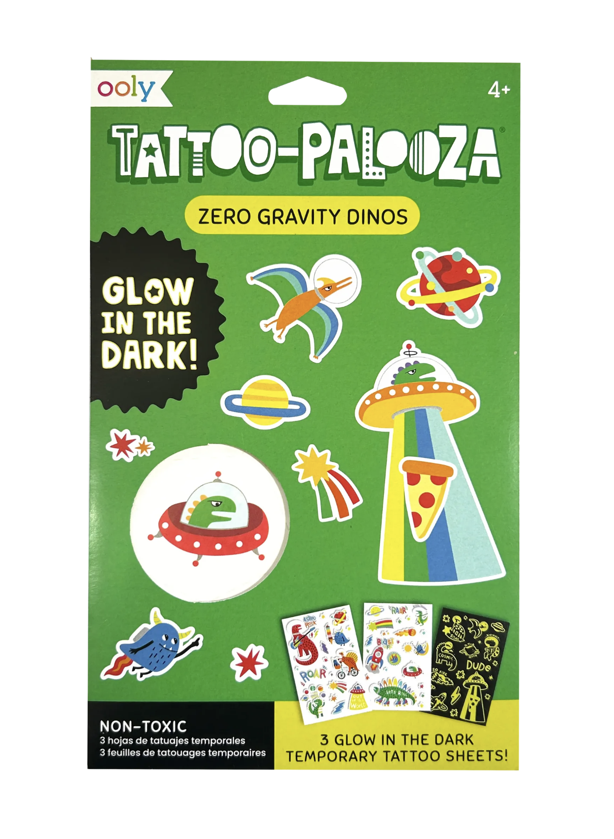 - Set of 3 tattoo sheets featuring glow-in-the-dark temporary tattoos