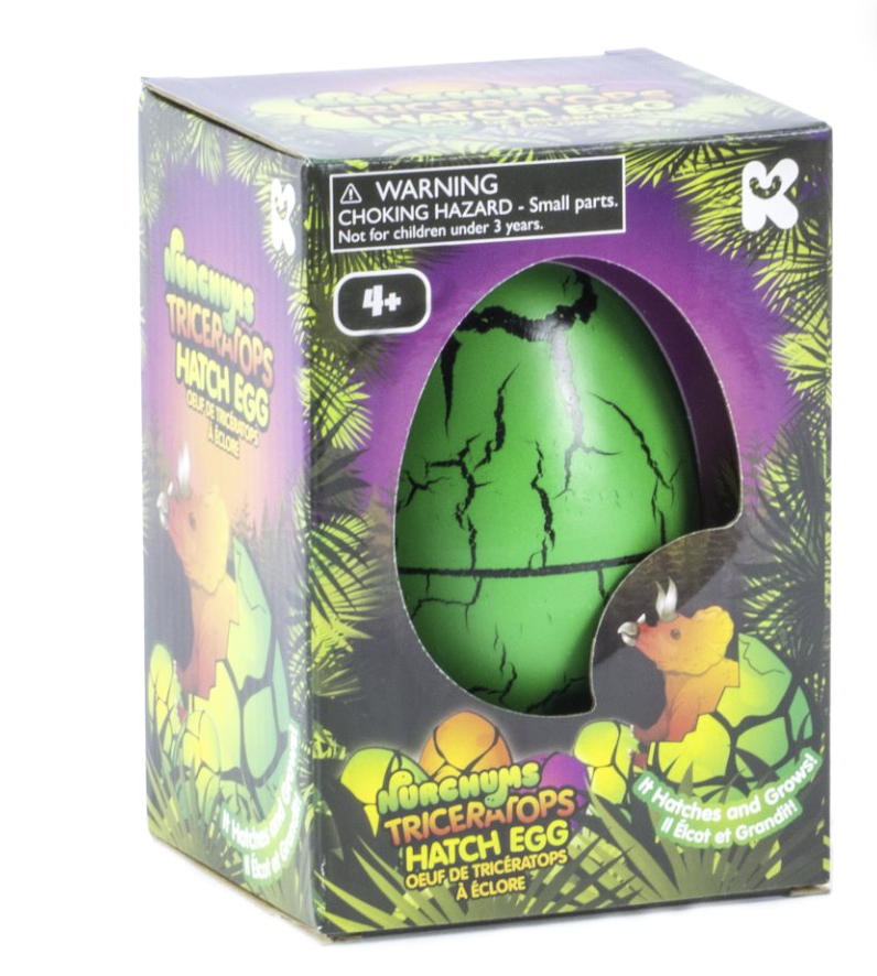 Animals hatched from eggs! Possess your own Triceratops, T-Rex, Stegasaurus, or Mermaid egg, pop the egg into a bowl of water and watch as the baby dinosaur hatches out of the egg and grows!