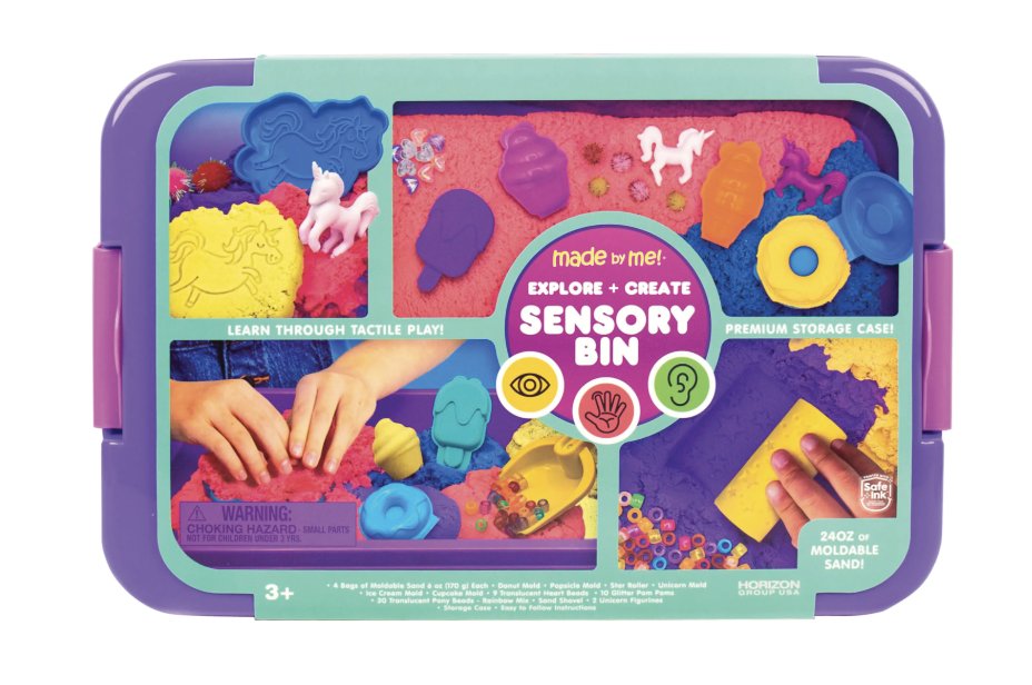 - All-in-one sensory bin filled with tactile compounds - play inside the case, then use it as a storage space