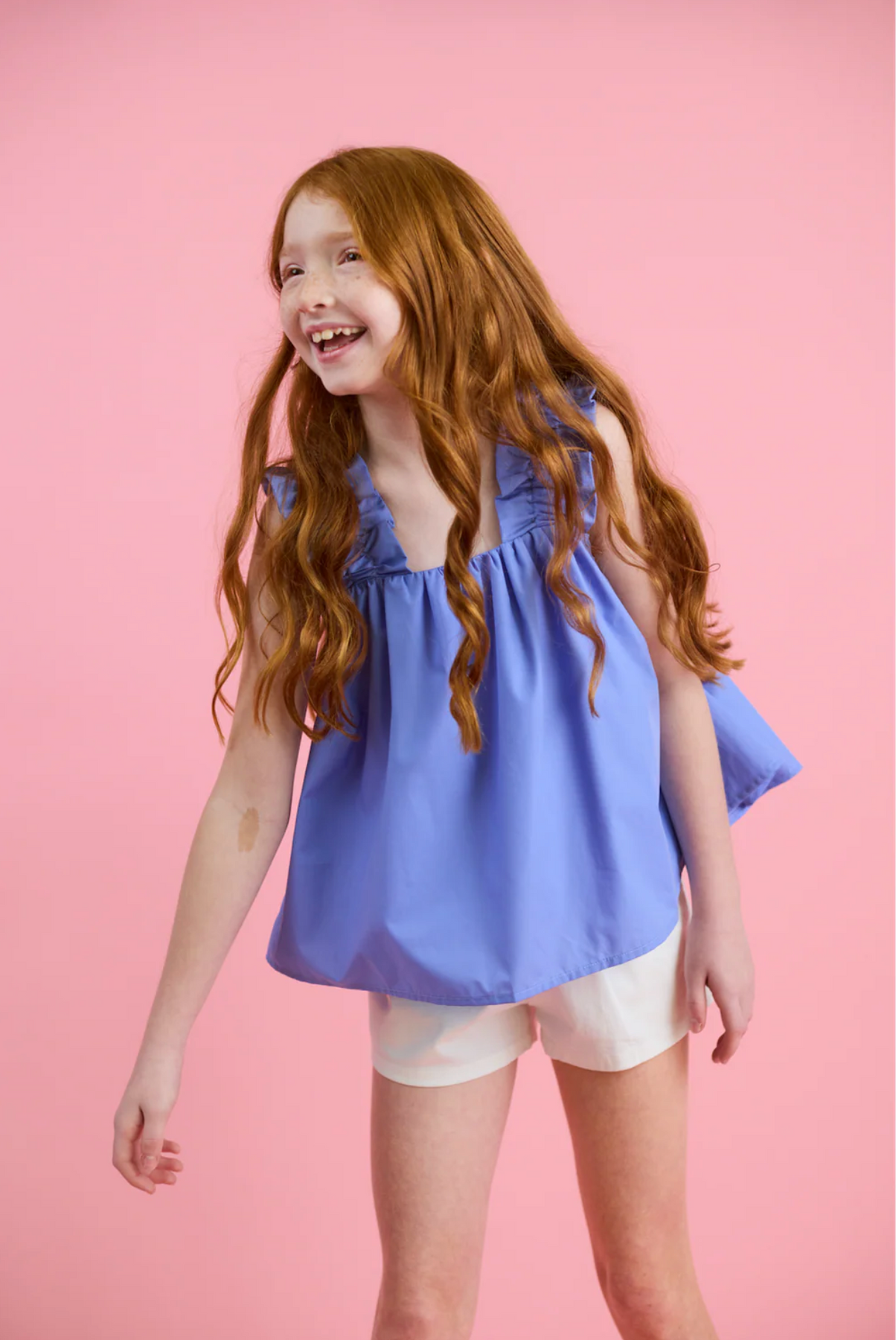 Fun, feminine, and tween-approved — this top is made for girls who love a little standout style. The soft ruffle detail along the straps adds a playful touch, while the relaxed, flowy fit keeps it comfortable and easy to wear.
